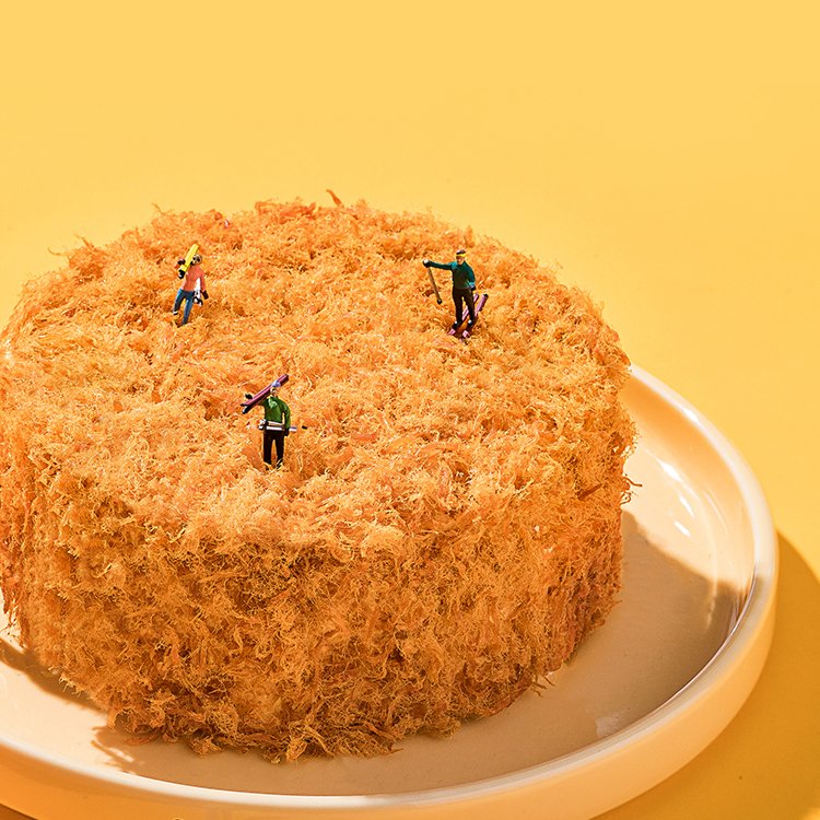 本产品为甜品下午茶系列,不含蜡烛、贺卡、生日牌的哦。舒芙蕾,不好做。被甜点师们公认为“世界上最难做的甜品”。因稍加不注意,它就会因为打发蛋白会受到各种条件的影响:温度,酸度,湿度,蛋白的新鲜程度,和烤制的火候而塌陷。我们将舒芙蕾放在蛋糕胚的位置上,只为牙齿触碰的一瞬被芝士浓香,被它轻柔地包裹与托起。因它是工艺源自1865年法国Kiri奶油芝士制作,牛奶天然发酵的气息让简单味道有了更深层次的升华。配合翻炒而成的鸡肉肉松,佐以秘制辣酱,酥脆咸辣。入口后总统奶油纯粹奶油烘托,在甜辣中,让唇齿间产生酥脆,柔软,奶香的节奏感,滋味十足。