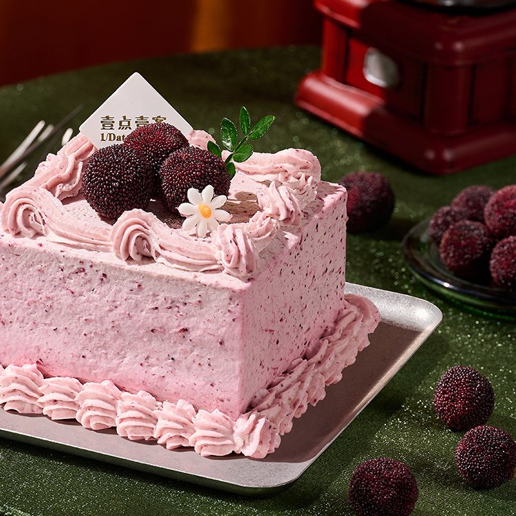 蛋糕上点缀着新鲜的杨梅,色彩鲜艳,让人忍不住想要一尝为快。轻轻咬下一口,蛋糕的松软与杨梅的酸甜在口中交织,带来一种独特的口感体验。杨梅的酸甜恰到好处,既不会过于刺激,又能激发味蕾,让人回味无穷。